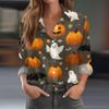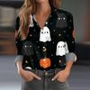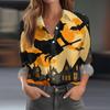 Women's Halloween Printed Casual Half-Open Collar Long Sleeve Shirt