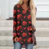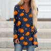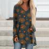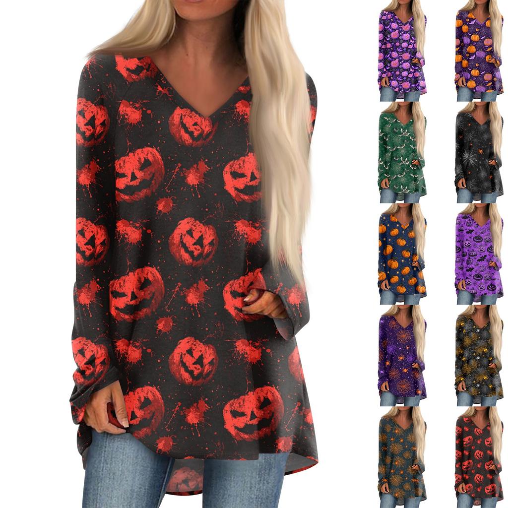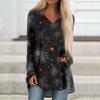 Ladies' Fashionable And Casual Halloween Printed T-shirt Long Sleeved V-neck Mid Length Top