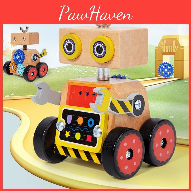 Wooden Ball Puzzle And Small Car Assembly Robot Toy For Kids With Color Matching And Diy Playtime