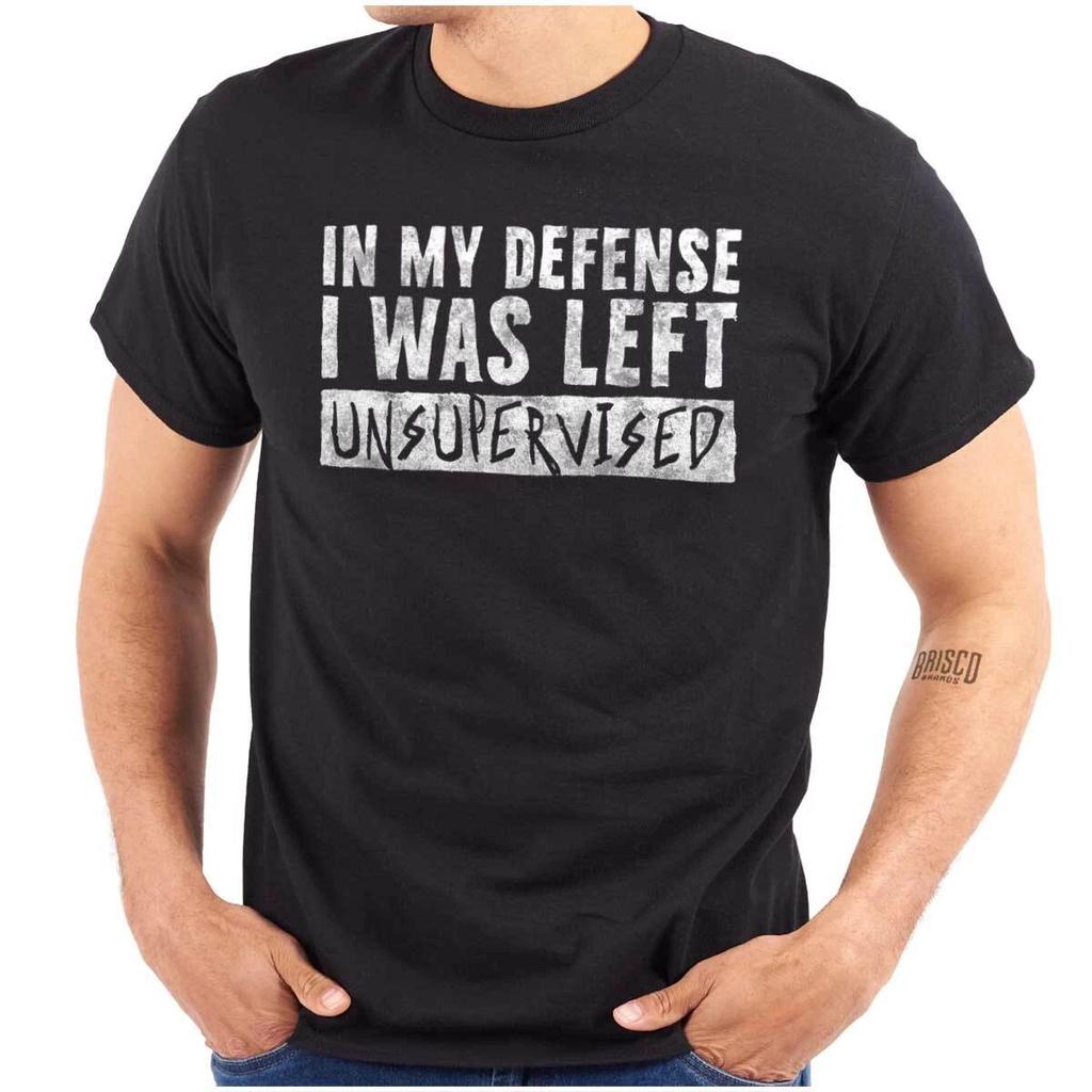 Funny In My Defense I Was Left Unsupervised Womens or Mens Crewneck 100% Cotton T-shirt Mens Tees Top Tee