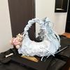 Lightweight Bow Square Shoulder Bags for Women Korean Style Ladies Underarm Bag Simple Female Pleated Drawstring Handbags Purse