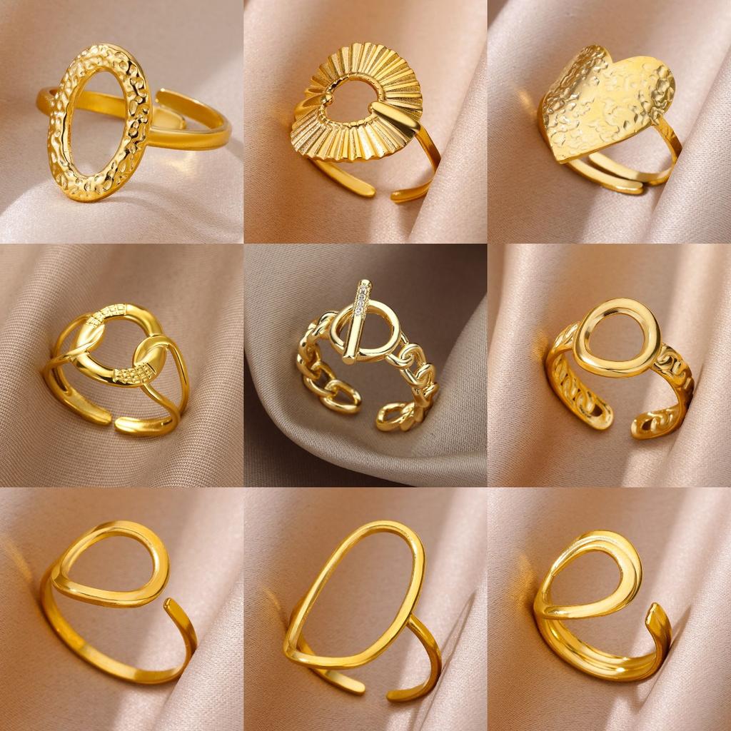 Round Hollow Rings For Women Gold Color Stainless Steel Hoop Open Rings Fashion personality Waterproof Metal Jewelry Accessories