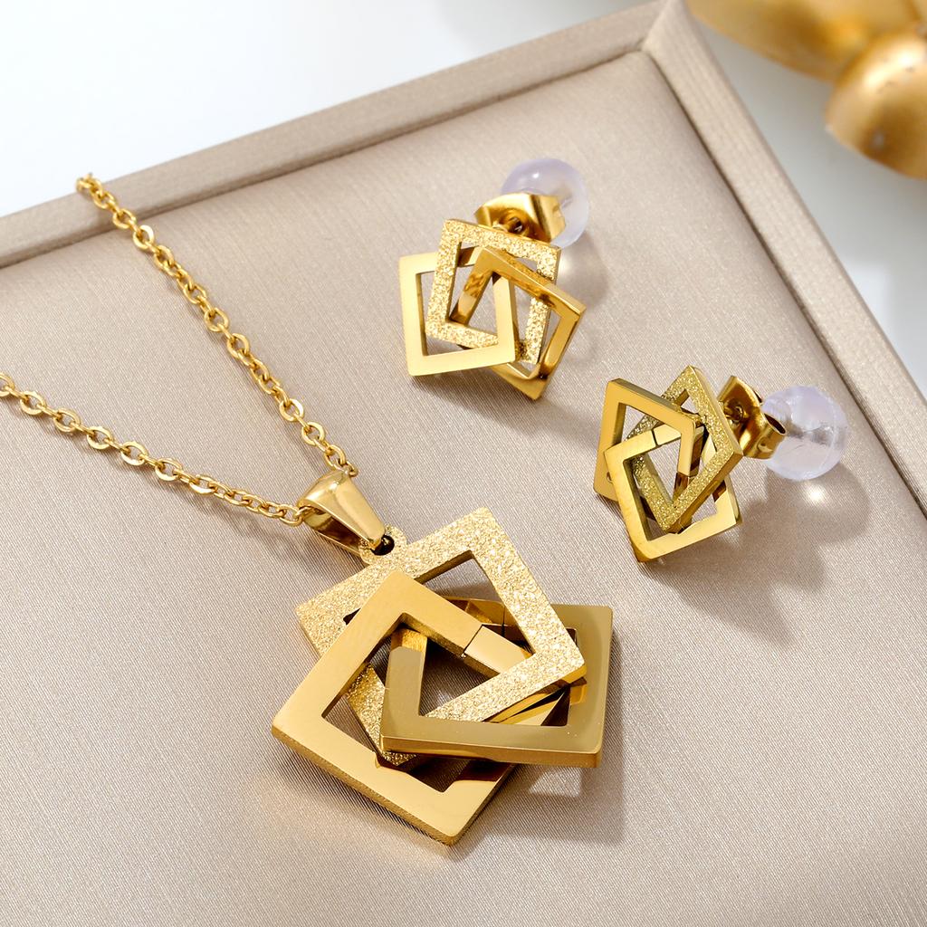 LUXUKISSKIDS Golden Waterproof Jewelry Sets Stainless Steel for Woman Wedding Party Accessorires Fashion Necklace Earrings Set