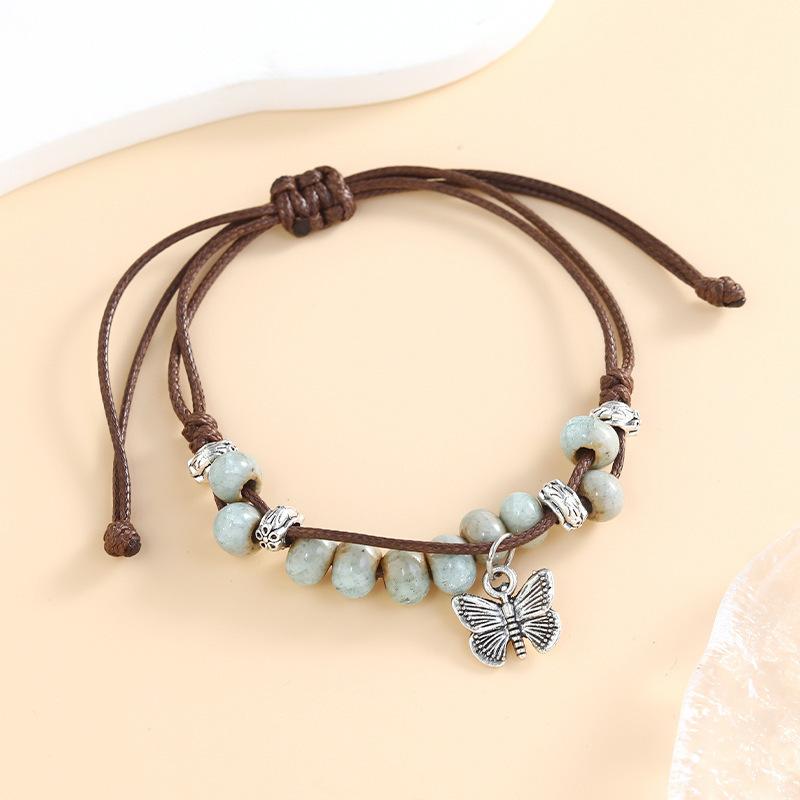 New retro literary and pastoral woven butterfly ceramic bracelet female student hand rope male