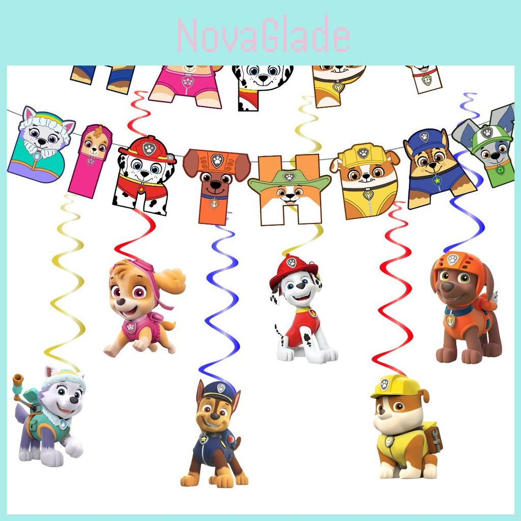 Ζωντανό Σετ Μπανέρ και Σπειροειδών Διακοσμήσεων Γενεθλίων με Θέμα Paw Patrol Για Σκύλους
