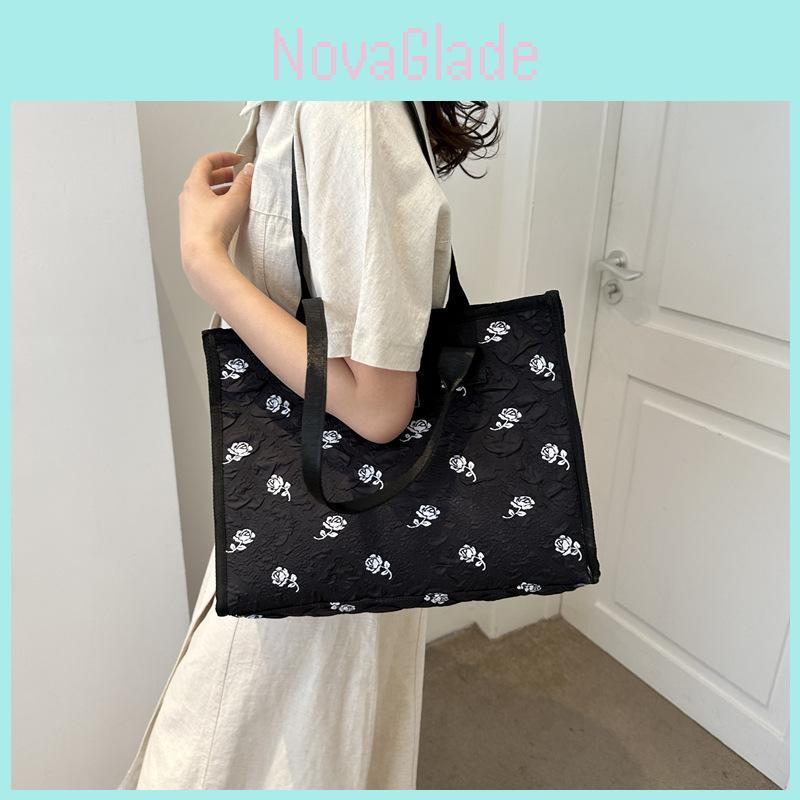 Elegant Canvas Shoulder Bag For Women Spacious 2023 Fashion Floral Tote