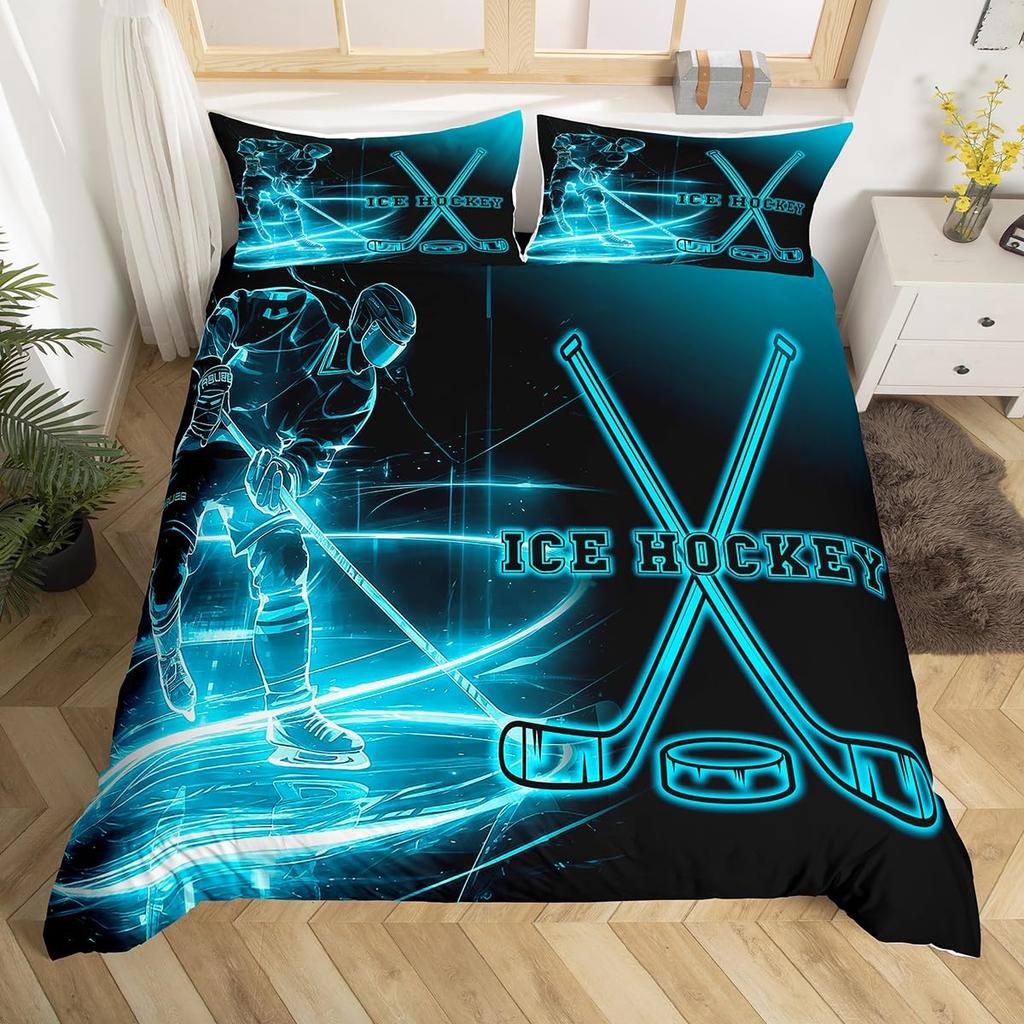 Comforter Ice Hockey Bedding Set Twin Size Kids Hockey Player Comforter Set For Boys Girls Teens Sports Theme