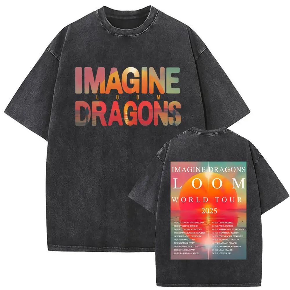 Rock Band Imagine Dragons Loom World Tour 2026 Washed Vintage T-shirt Men Women Gothic Oversized T Shirts Unisex Casual Tshirt