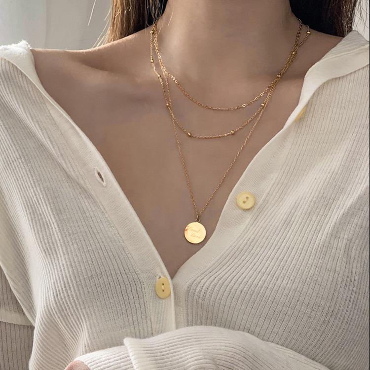 Goodluck Multilayer Light Gold Necklace - European/American Style Titanium Steel Women's Clavicle Sweater Chain