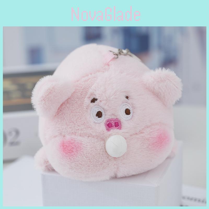 Adorable Bubble Blowing Pig Plush Keychain Cute Stuffed Animal Bag Charm