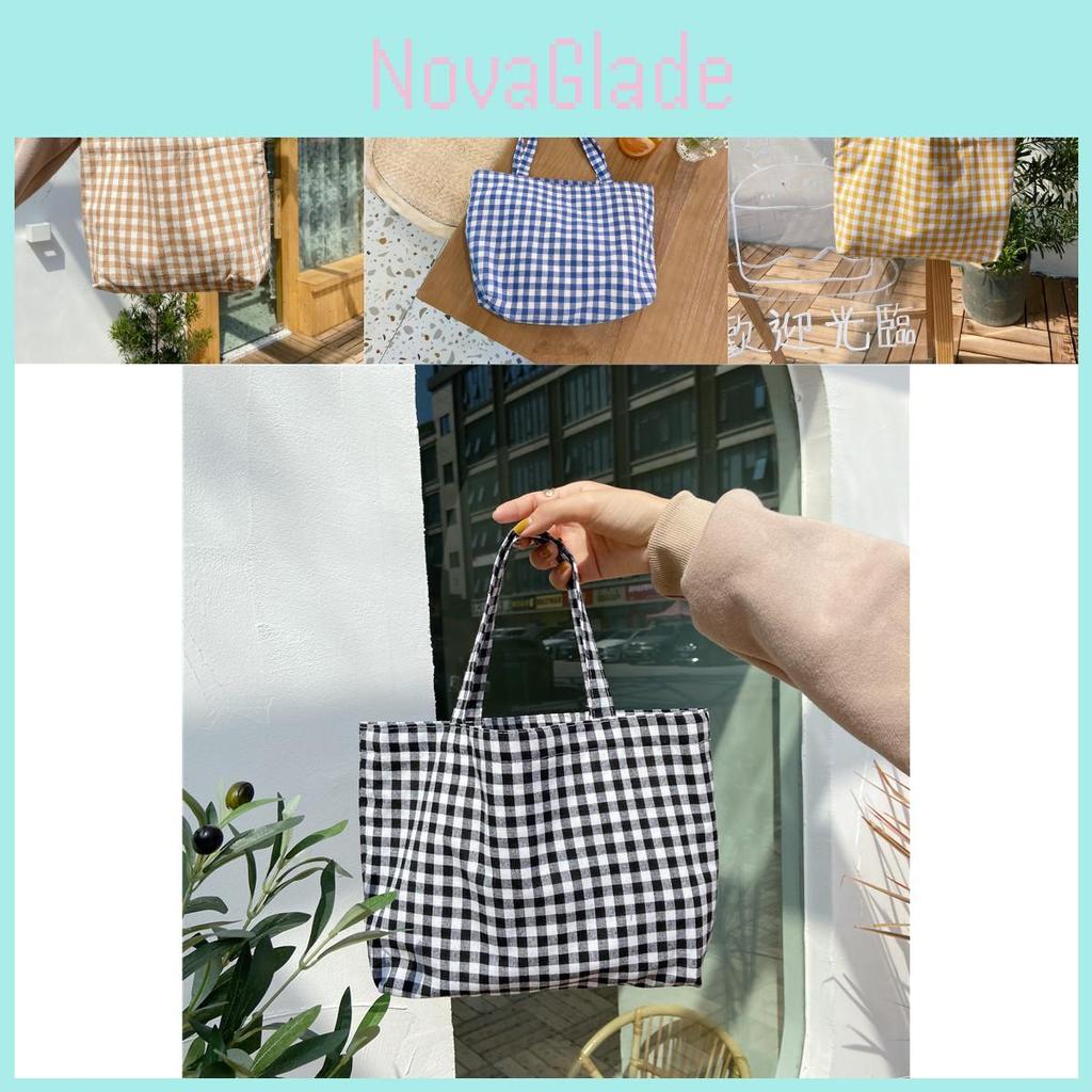 Charming Fresh Portable Bento Bag Japanese Style Plaid Handbag For Moms Students