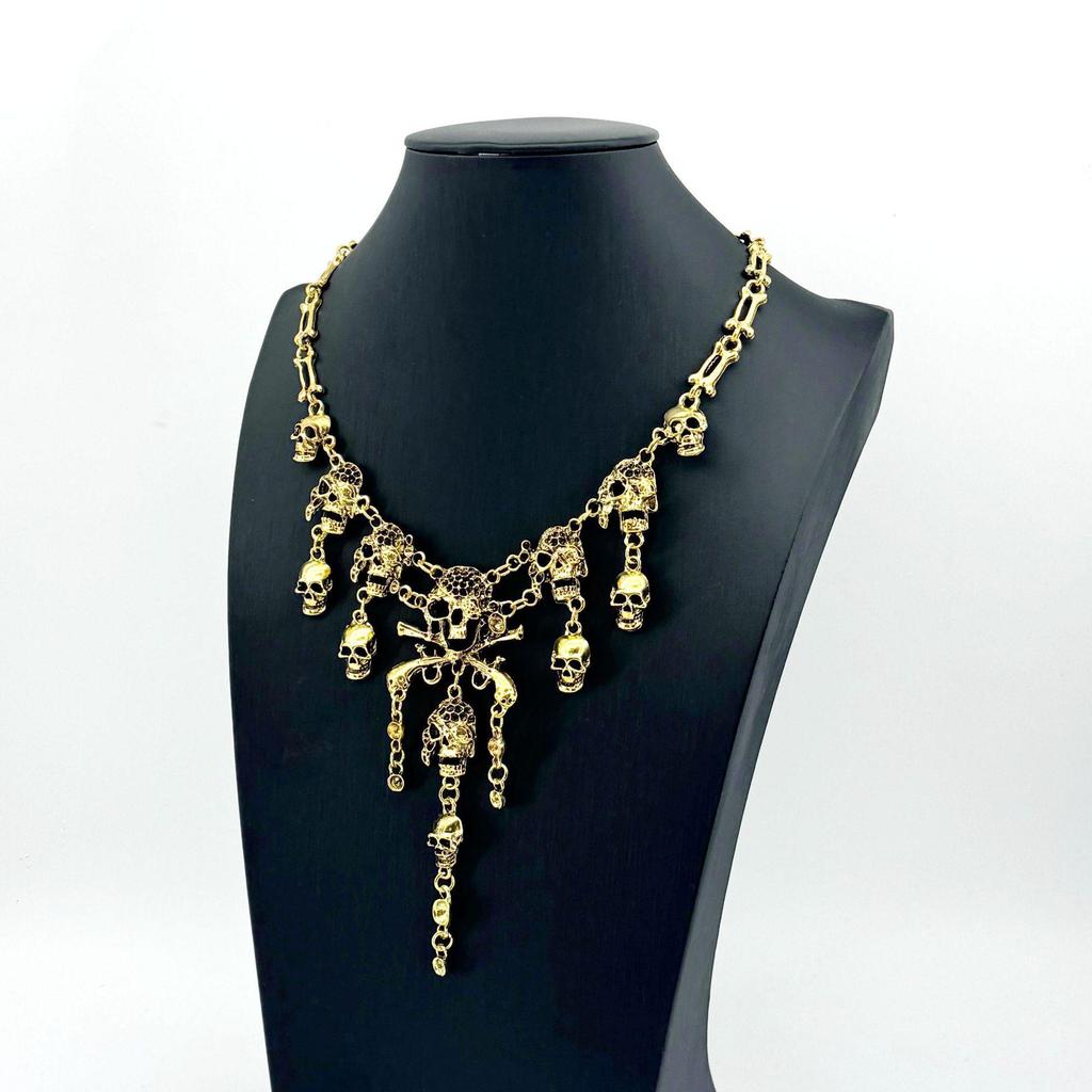 Halloween Retro Skull Ghost Tassel Necklace - Multi-Layered Alloy Design for Women