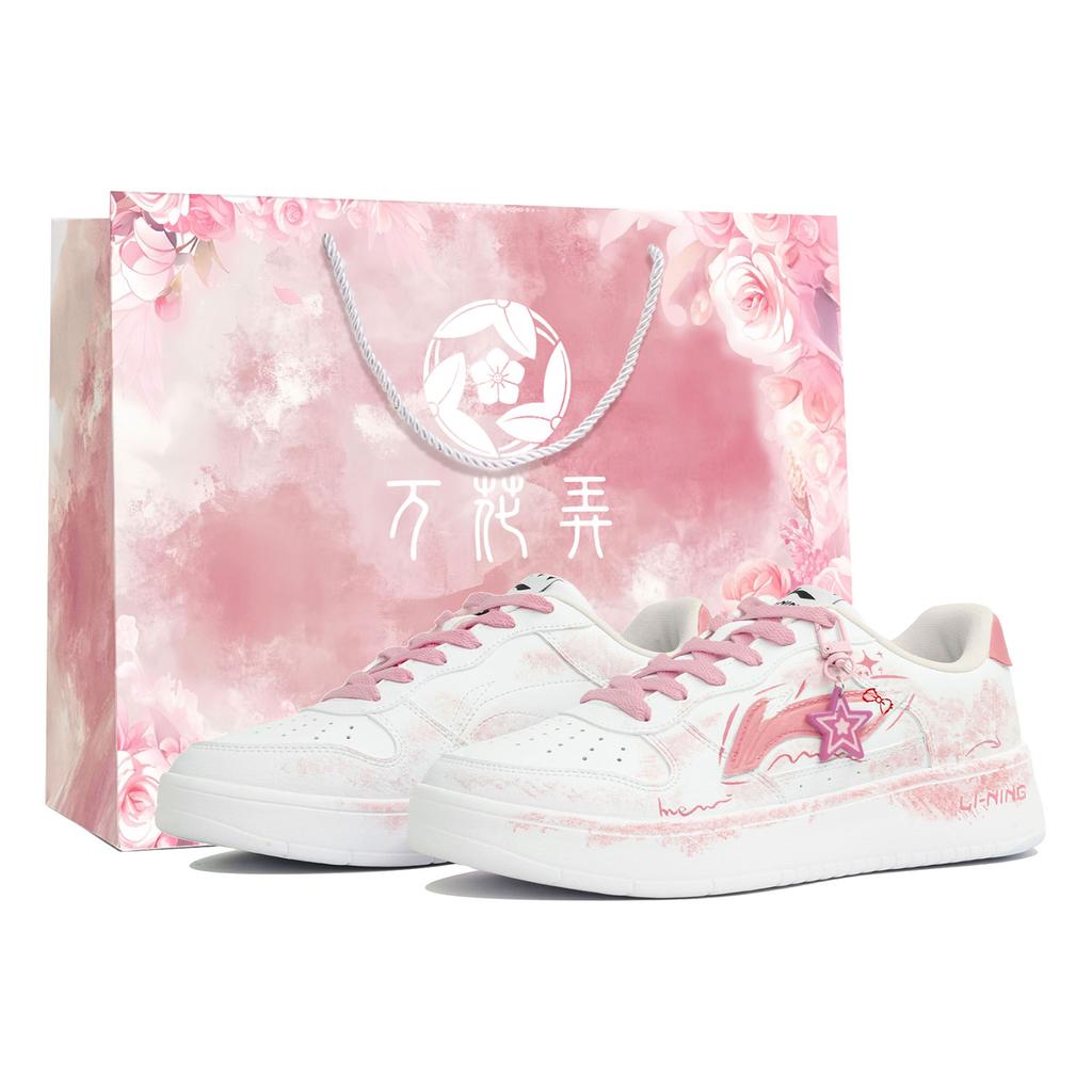 Li Ning Floating Boat Slip Resistant Abrasion Resistant Low top Skateboard Shoes Women's Pink White AGCS420-6(Team113-S-BOX)