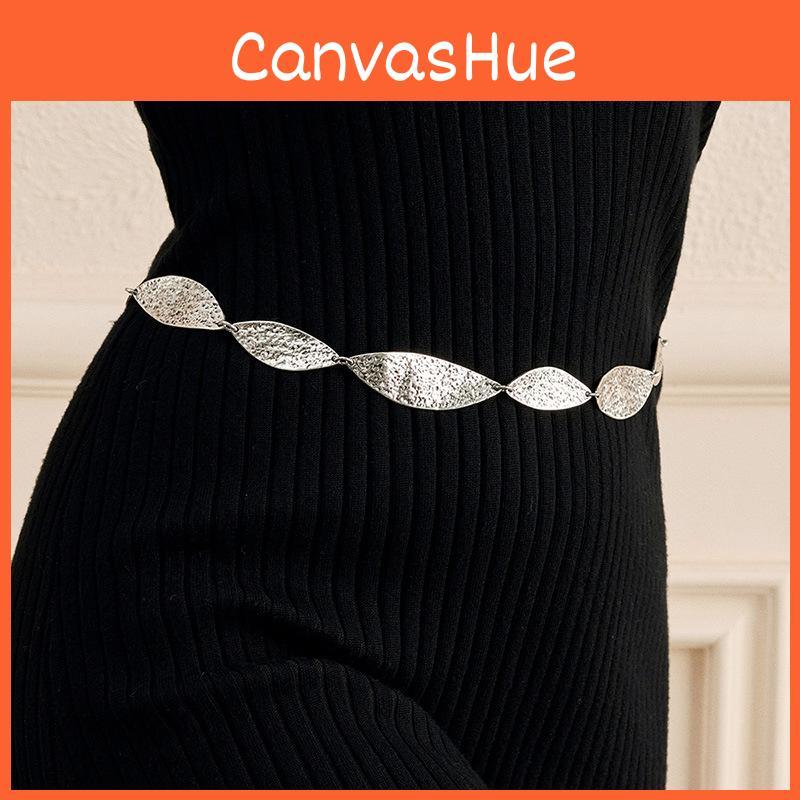 Woman Leaf Texture Metal Waist Chain With Hook Closure For Spring Summer Fashion Accessory
