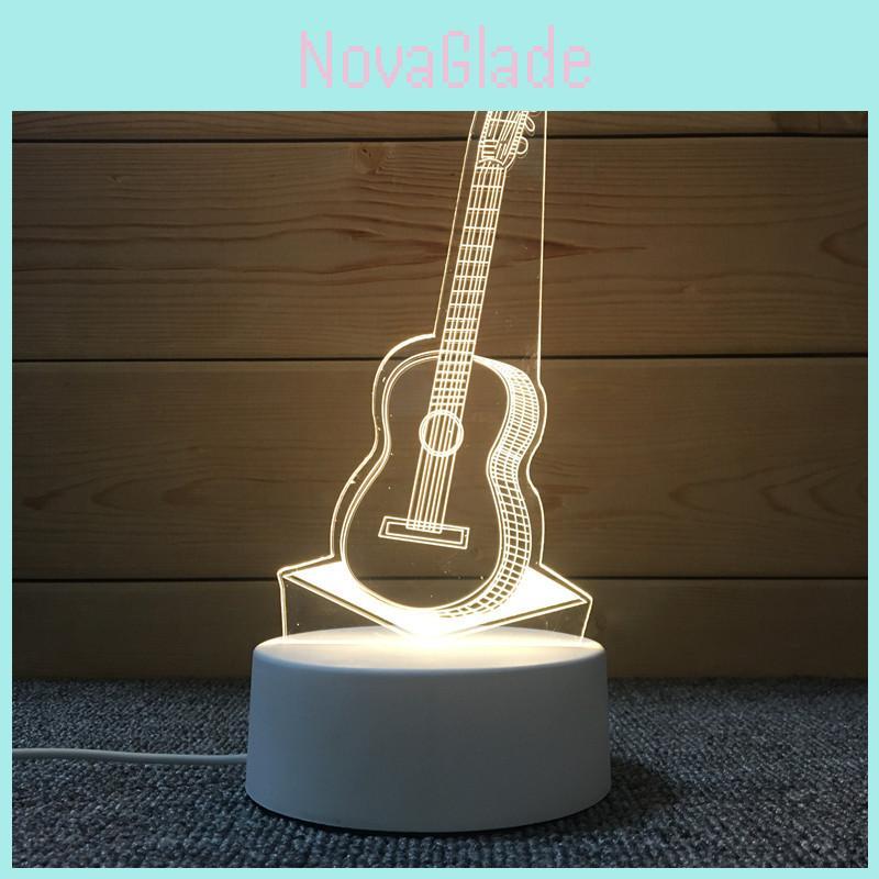 Guitar Yoga Music 3d Night Light Creative Desk Lamp Acrylic Shade European Style Usb Power