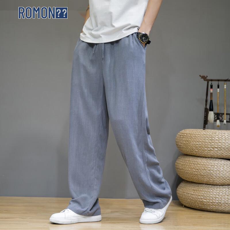 ROMON Men's Chinese Style Linen Blend Casual Straight-Leg Pants