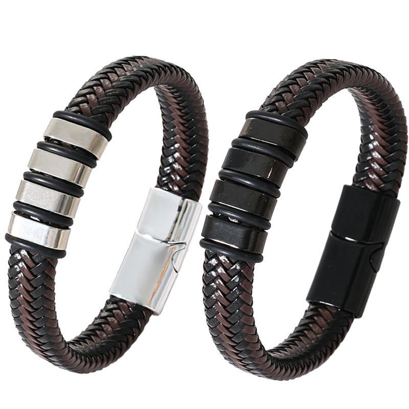 Retro Anti-static Stainless Steel & PU Leather Magnetic Weave Bracelet for Men