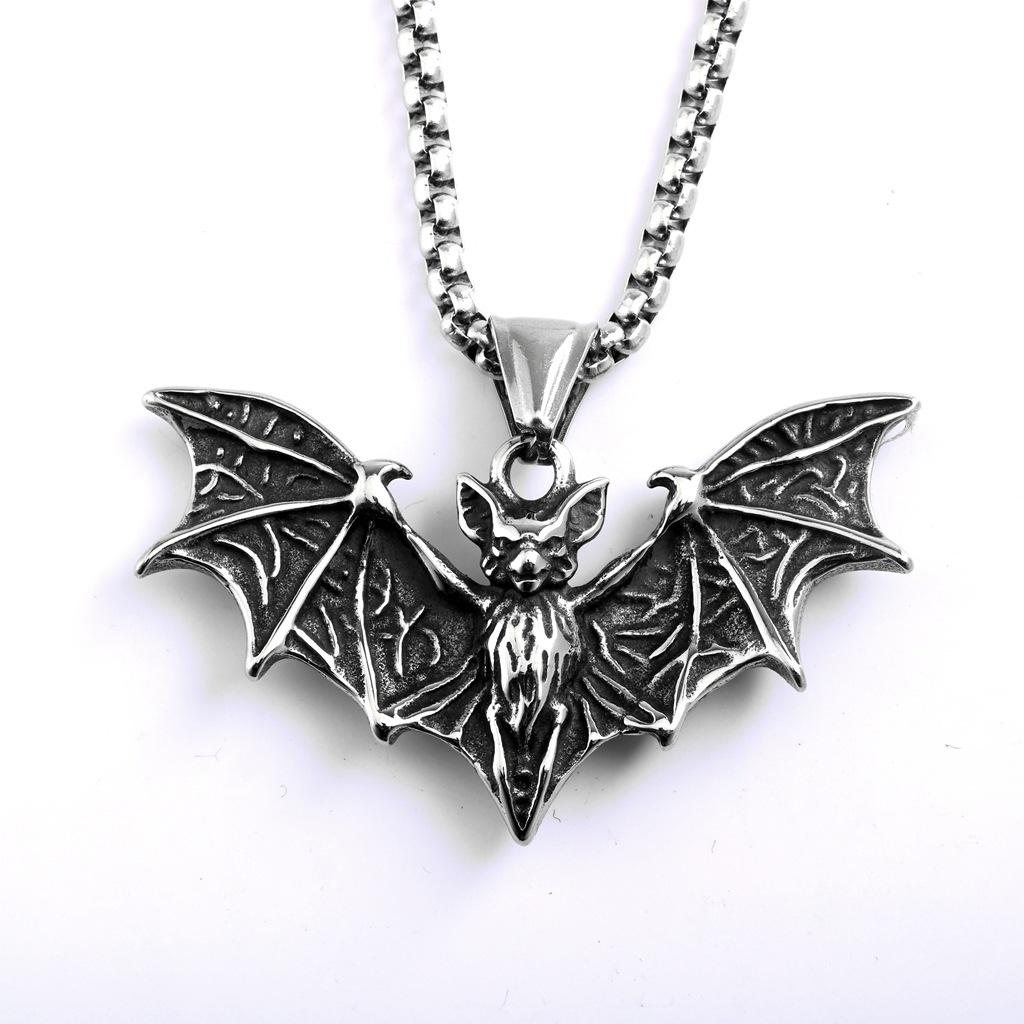 Unisex Stainless Steel Bat Pendant Necklace - Punk Halloween Gift
