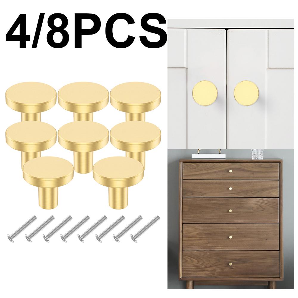 4/8pcs Antique Solid Brass Cupboard Door Handle Knob Brushed Gold Hardware Knob for Furniture Kitchen Cupboard Closet Wardrobe