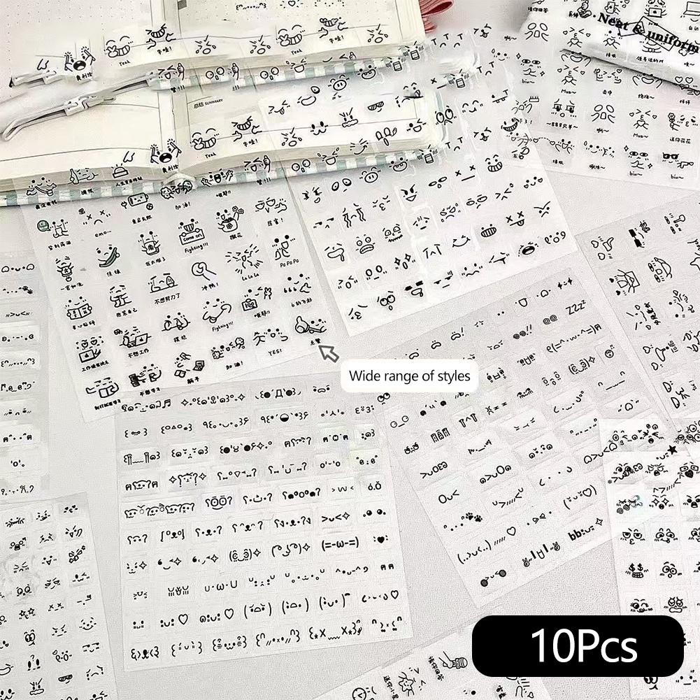10pcs Cute Expression Scrapbook Sticker Korean Fashion Transparent Emoticon Journaling Sticker DIY Decor Sticker Kid Gift