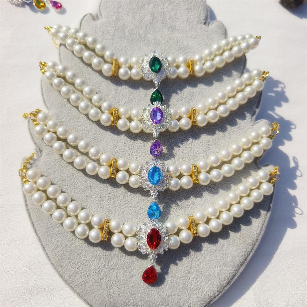 Original design pet heart of the ocean pearl necklace cat dog luxury gemstone double collar jewelry