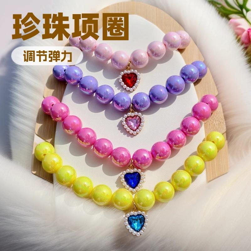 Niche Premium Cute Pearl Necklace Sweater Chain Puppy Pendant Accessories Love Rhinestone Pendant Cat Dog Collar