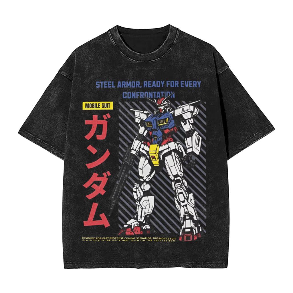 Mobile Suit Gundam Anime Harajuku Washed Retro Vintage T-Shirt Cotton Men's Streetwear Oversized Women's Short Sleeve
