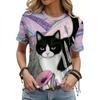 Funny Cat T-Shirts Animal 3D Print Women O-Neck Short Sleeves T Shirt Streetwear Y2k Tees Tops Female Clothing