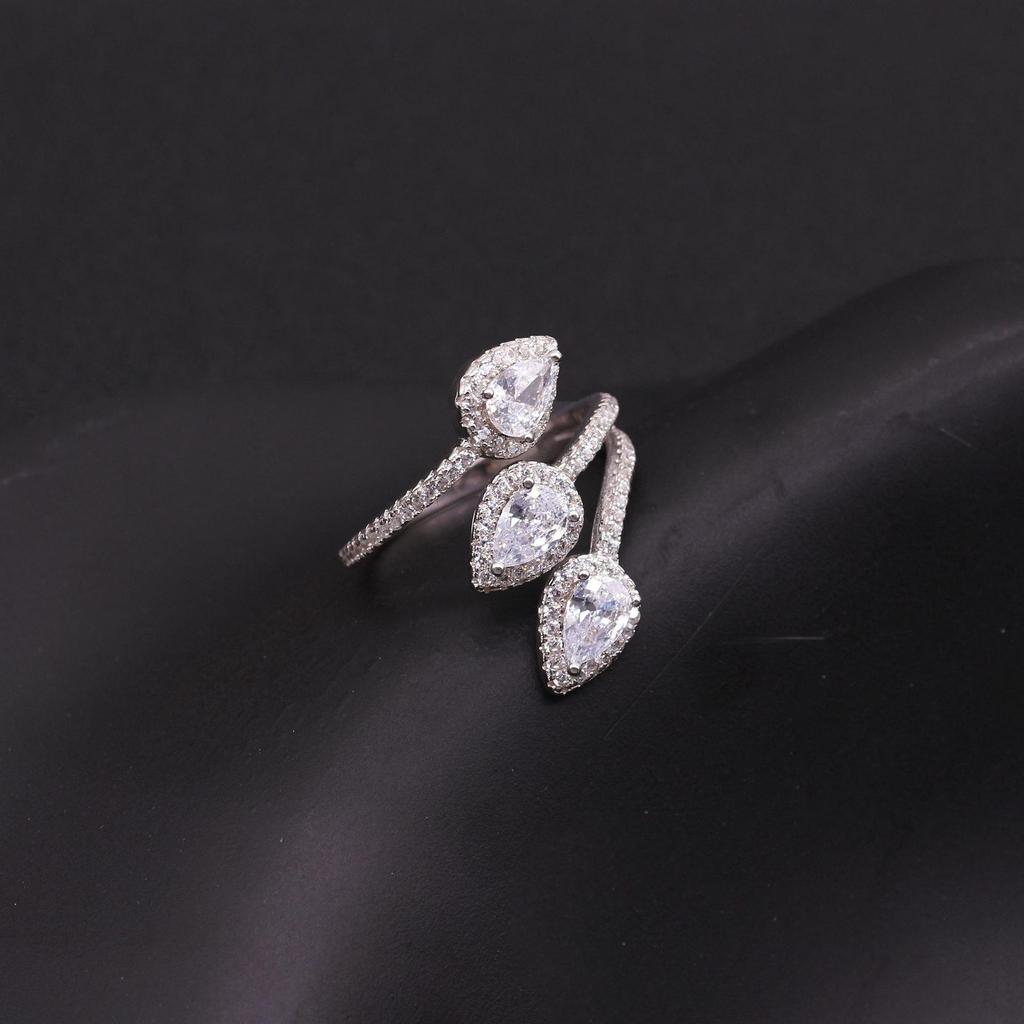 Elegant Sterling Silver Zircon Open Ring for Women