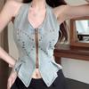 2024 Summer Plus Size Spicy Sweet Halter Neck Denim Fishbone Top