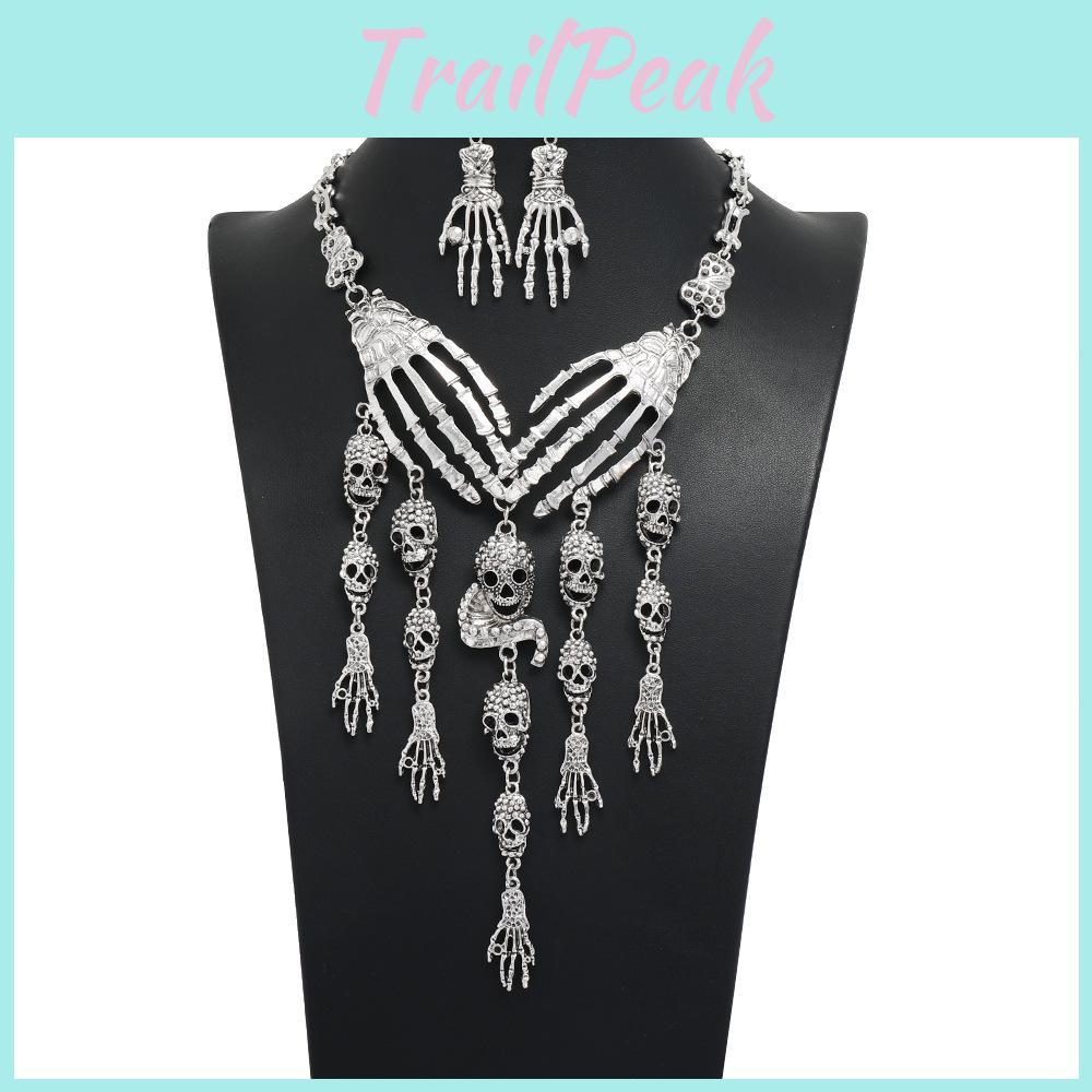 Fashion Hand Bone Women Necklace And Earring Set With Skeleton Tassel Design For Vintage Halloween Costume Accessories