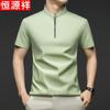 Men's Casual Fashion Zipper Solid Color Short Sleeved Polo Shirt Stand Up Collar Versatile Comfortable Top