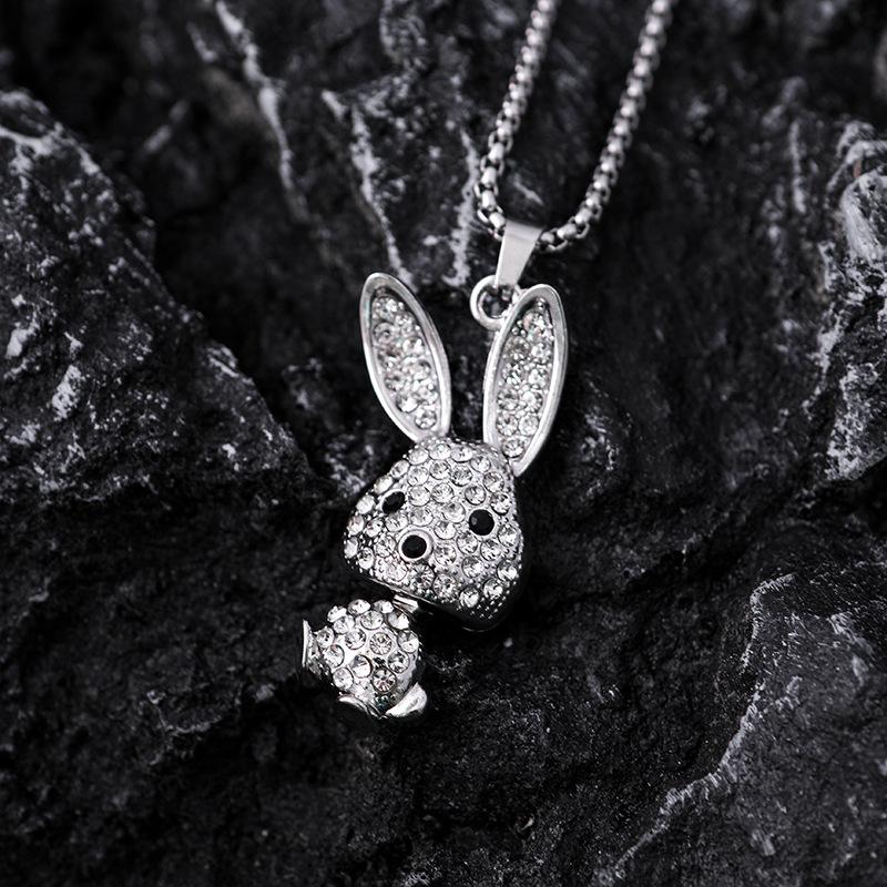 Cute Elf Bunny Pendant Necklace Zircon Design Stainless Steel Clavicle Chain Necklaces Jewelry Gif