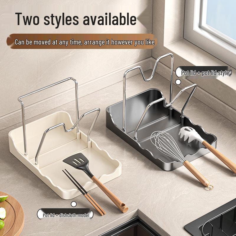 Multifunctional Kitchen Countertop Pot Lid and Spatula Rack with Drainage