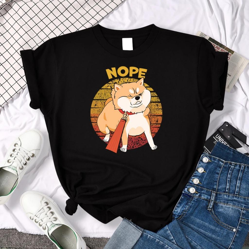 Kawaii Shiba Inu NOPE Cute Dog Print Female T Shirt Summer Oversized Tshirt Street Fit Tops tee Cartoon Oversize Womens T-Shirts