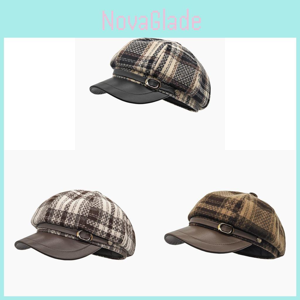 British Style Wool Blend Plaid Newsboy Cap With Wide Brim For Cold Weather Fashion