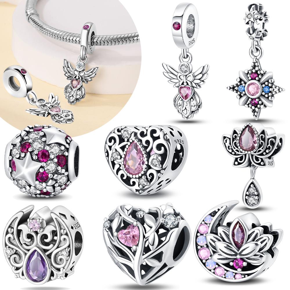 Purple Retro Love Shape Metal Lotus Classic Angel Pattern Charms Beads Fit 3Mm Original Bangle Make your own Accessory Gift Elegant Fashion Beautiful