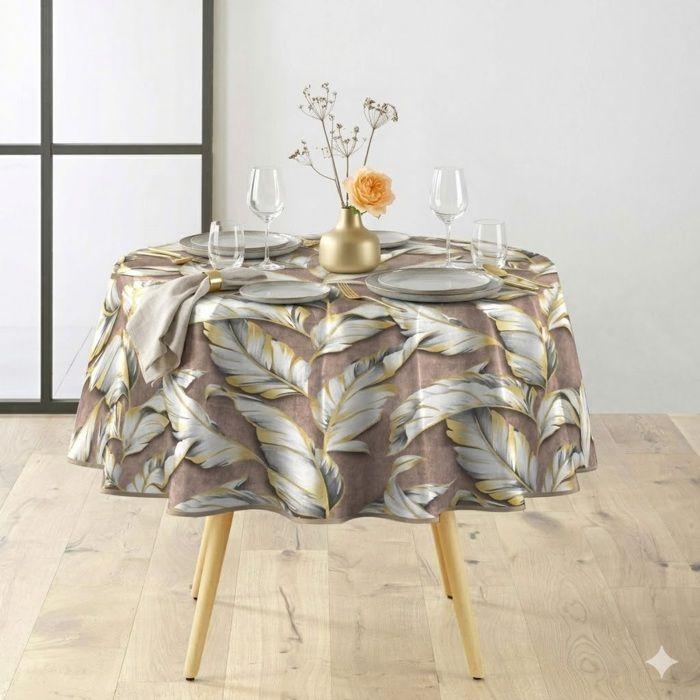 Nappe ronde - EDEN - Ebany Choco - Ø 160 cm - Marron motif végétal pailletées dorées - PVC imperméable