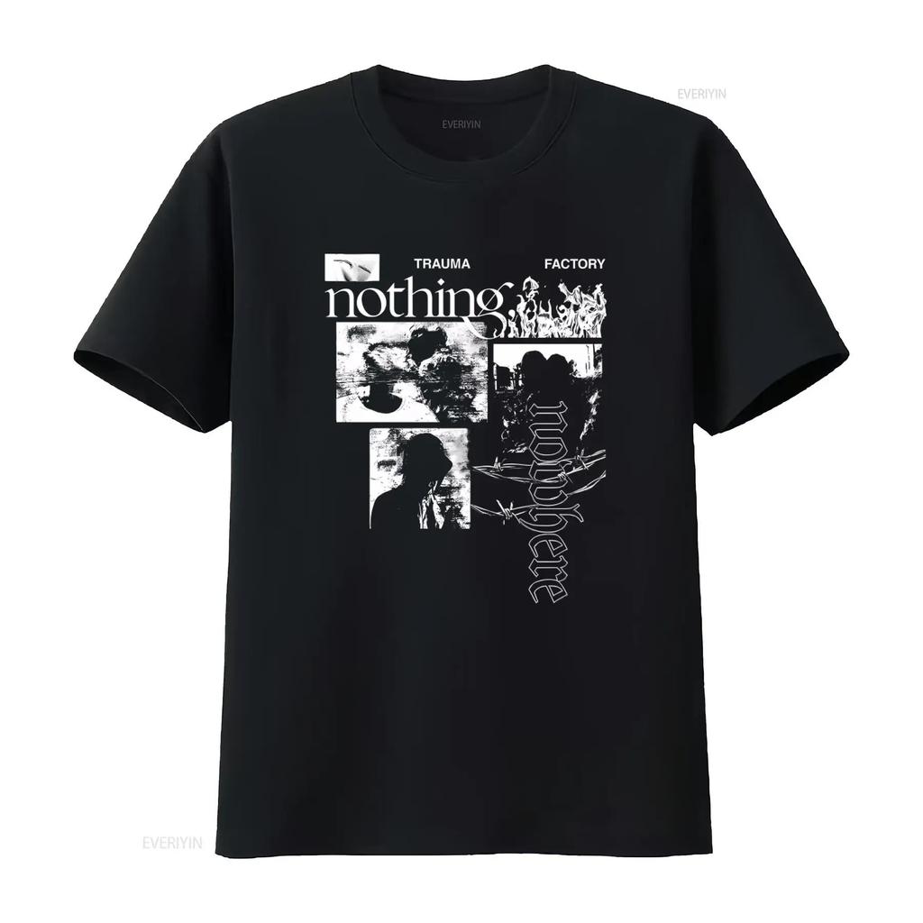 T-shirt Nothing Nowhere Σχέδιο Trauma Factory για Εκτύπωση Μόδας vintage Πλυμένο ρούχα streetwear σχεδιαστή homme Ελαφρώς