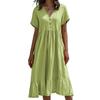 This women's dress features charming button decorations on the chest, adding both style and depth to its simple design. Available in fresh and natural colors like lime green, warm orange, lake green, and subtle gray, it suits various occasions and personal styles. The classic V-neck enhances the neckline and face shape, offering a feminine yet comfortable fit.