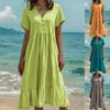 Comfortable Summer Fit: Designed with short sleeves and a loose A-line skirt, this dress ensures breathability and ease of movement. Ideal for beach days or vacation getaways, its relaxed fit promotes a casual, laid-back vibe while keeping you cool under the sun.