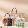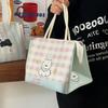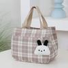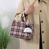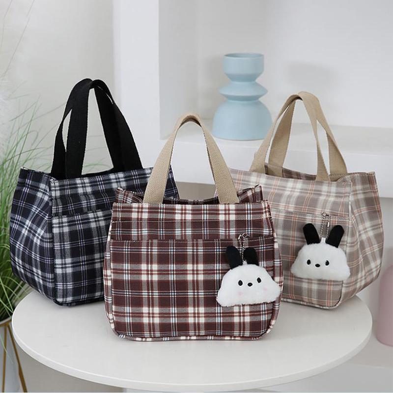 Cartoon Casual Plaid Pattern Canvas Versatile Handbag With Plush Pendant Office Worker Lunch Bag Tote Bag Mountaineering Bag