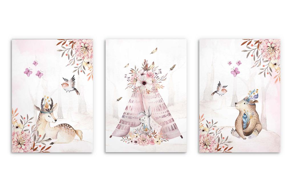 Plakaty dziecięce Zestaw Las Boho Pastelowy róż Obrazy dla dzieci 50x70