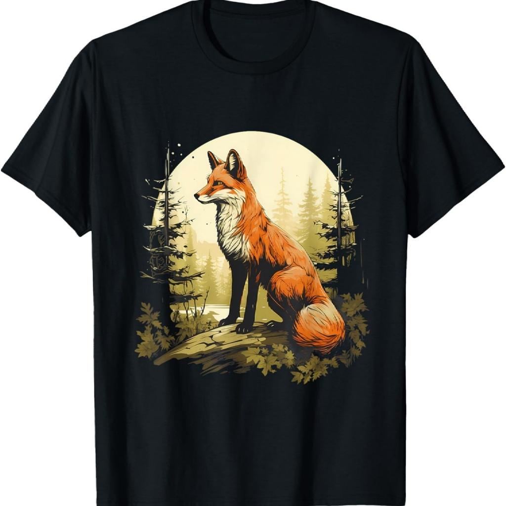 Fox Nature Forest Wildlife Motif Animal Lovers Landscape T-Shirt