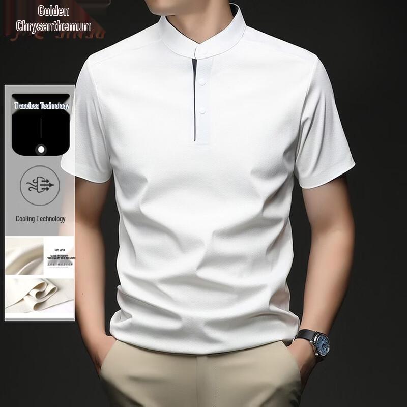 Men's New Chinese Style Ice Silk Stand Collar Polo T-Shirt