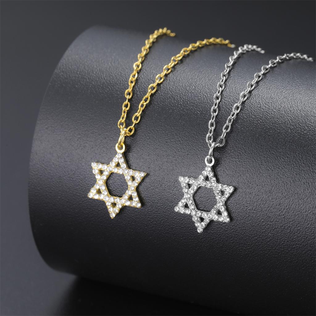 Classic Star of David Necklaces Stainless Steel Rhinestones Six-pointed star Necklace for Women Men Jewish Jewelry Gifts