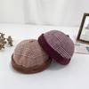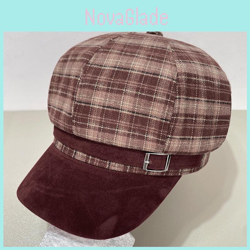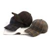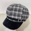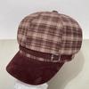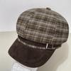 Vintage Brown Plaid Octagonal Hat For Women Winter Warm Fashion Cap