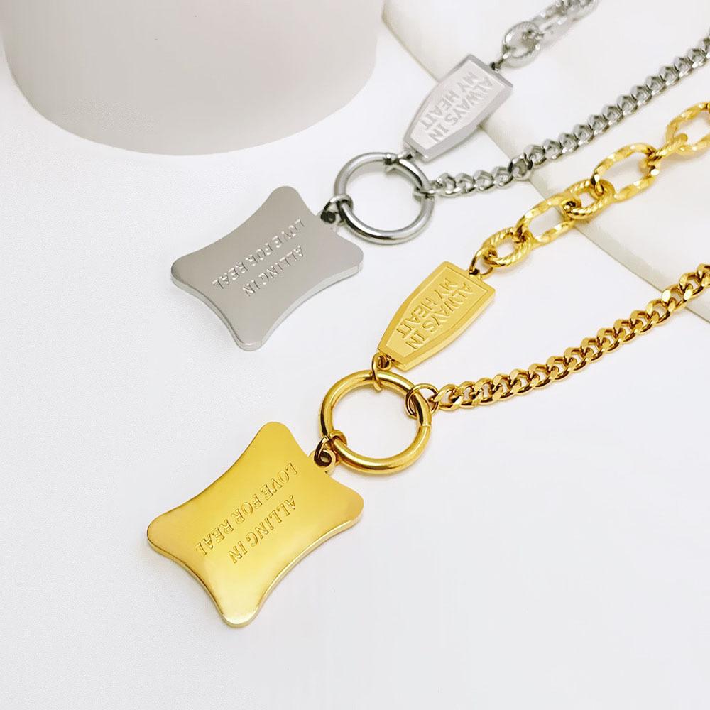Fashion Design Hip-Hop Square Necklace Exaggerated Personality Temperament Titanium Steel Collarbone Chain Does Not Fade Versatile