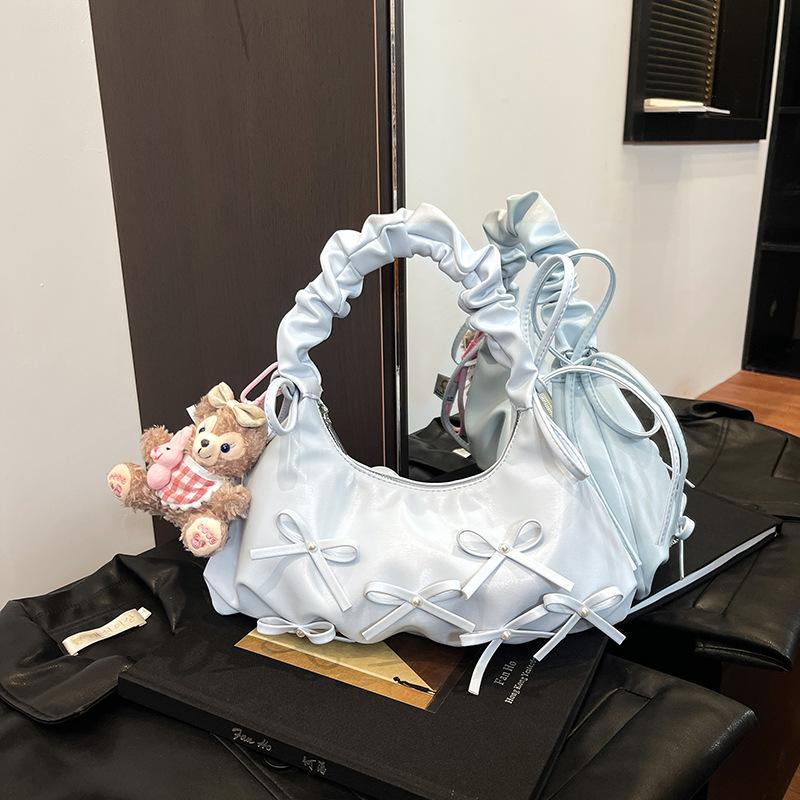 Niche pleated bow dumpling bag women's 2026 spring new Korean light luxury texture shoulder armpit bag