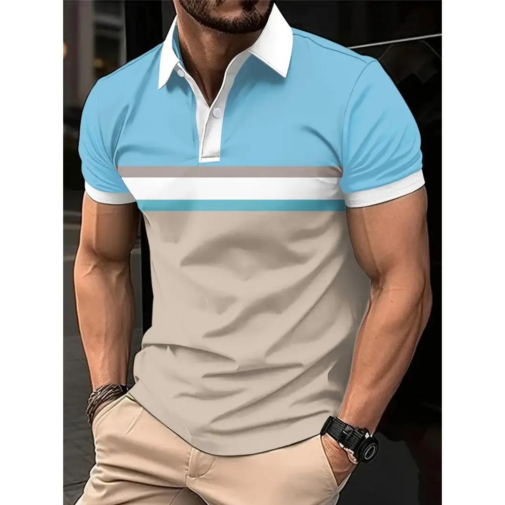 3D Print Men's Polo Shirts Summer Classic Stripes Color Matching